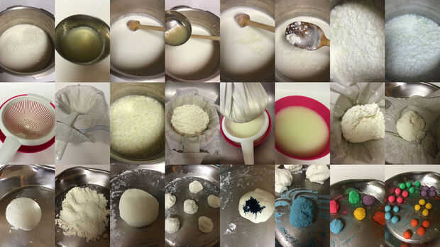 JIC Hoy es el domingo de aquí. Es hora de un día colorido. Ahora, vamos a hacer algo dulce para comer. Y hoy, vamos a hacer el pequeño arco iris Dorayaki.Y aquí está cómo.Paso 1: Se necesita 250 gr harina100 ml de lecheté 100 mlAzúcar (tan dulce como