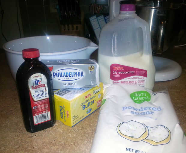 Esta receta es para glaseado de crema de mantequilla de queso crema. Es muy delicioso pero no hasta el verano de calor (90 más grados F) muy bien. Ser advertidos! No refrigerado hasta su uso o al servicio.