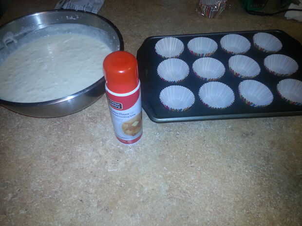 Línea su pan de cupcake con revestimientos coloridos y rocía un spray antiadherente manteca en los trazadores de líneas.
