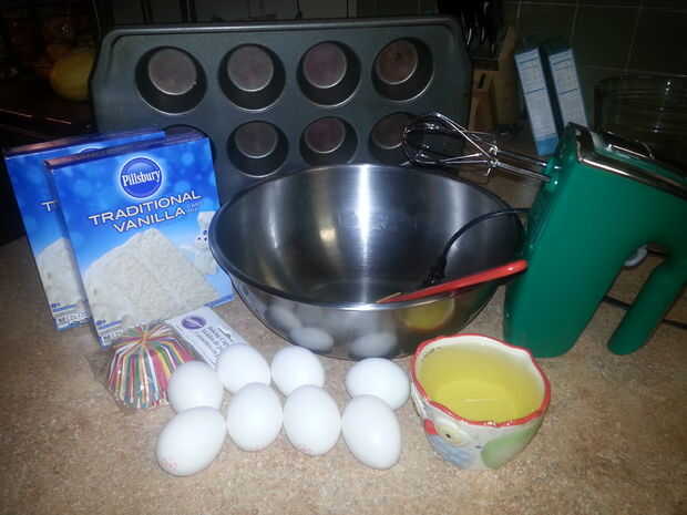 Usted puede obtener 24 cupcakes por una caja de mezcla para pastel. Necesitaba dos cajas para completar 36 cupcakes.
