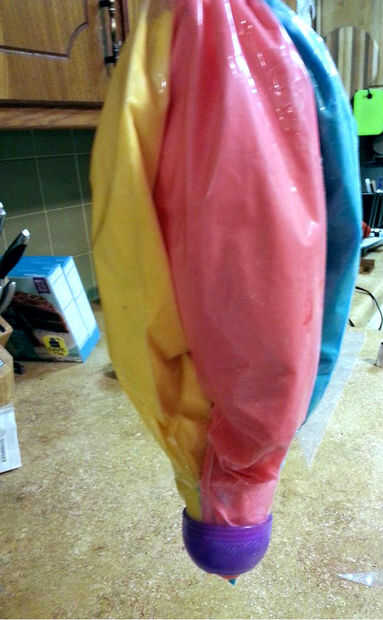 Una vez que las bolsas están llenas de color guinda, ate la parte superior con una banda elástica. Até mina todos juntos, que lo hace parecer un beachball desinflado. Usted puede atar por separado y luego juntos como un grupo pero no creo que es parte importante.