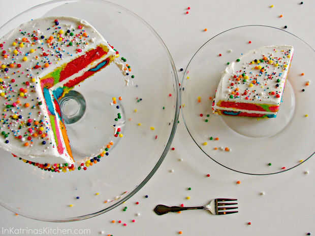 esto oh tan bonito pastel arco iris la colmena la torta toma un poco de tiempo para armar, pero el factor wow, una vez que termine es así vale la pena. Puede utilizar glaseado y paquete mix pasteles o preparar sus propias recetas favoritas y luego só