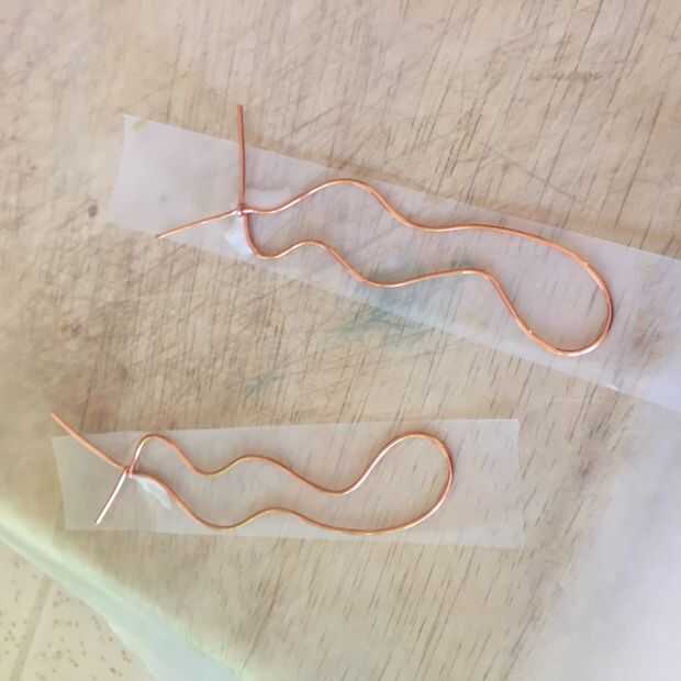 Después de formar el alambre bases, me pegué a la cinta scotch para forros. Presione la cinta firmemente como sea posible. Estoy tratando de cinta scotch en el lugar de embalaje cinta para este proyecto porque era difícil despegar las formas de la cinta de embalaje. Su forma de alambre en la cinta para hacer un respaldo del palillo. Presione, presione, pulse.