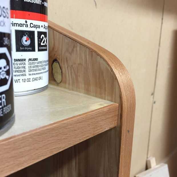 Construir la plataforma de unos 3/4" madera contrachapada restos había en la tienda y tuvo que hacer algunos cambios de diseño para acomodar la madera que tenían en mano. Los bordes eran bandas con tiras delgadas de algún tipo de madera que tenía colocación alrededor y la cosa entera fue acabada con Varthane mate.