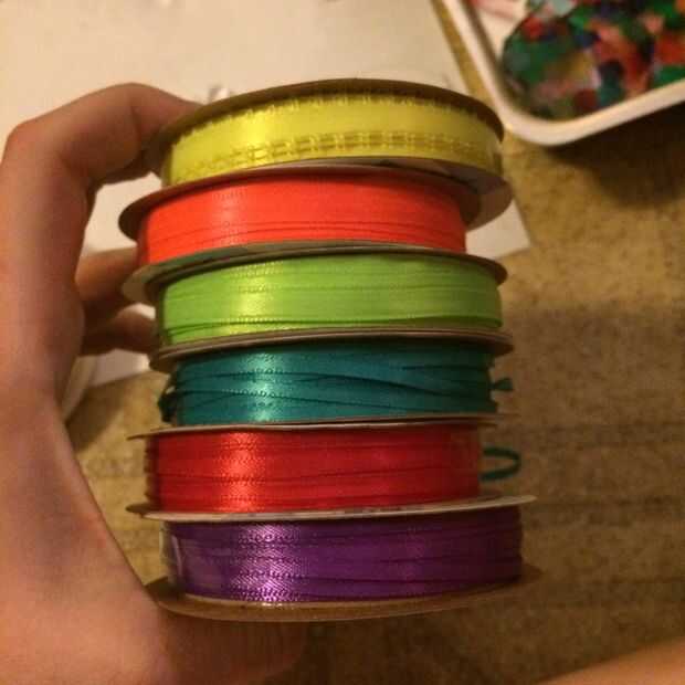 4) (opcionales) que utiliza cintas delgadas cintas para añadir más "arco iris" a este suncatcher.