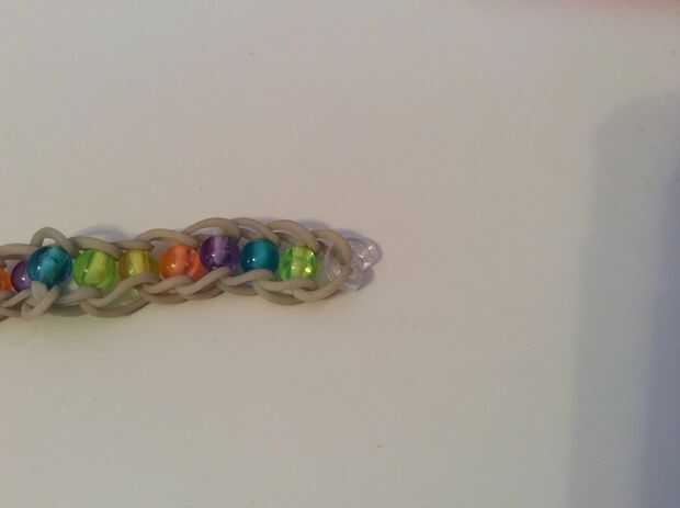 se necesita: un telar del arco iris, un gancho, bandas de goma y de un ' clip o clip de 'c'.Paso 1: Colocación de las bandas Con las bandas de color de rosa, mueva la banda de la clavija central a la izquierda e ir en línea recta hasta el segundo d a