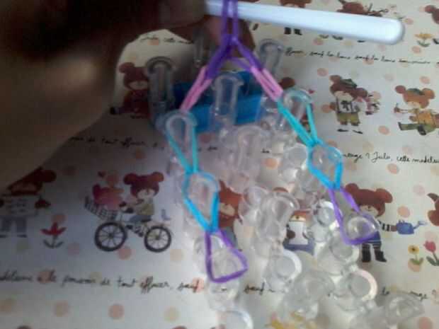 Aquí es cómo hacer el arco iris telar bebida sola.Paso 1: Obtener los elementos necesita cualquier color gomas C clip, gancho, telar.Paso 2: colocación de bandas de caucho Hacia fuera sus gomas en cada conjunto de clavijas.Paso 3: Tiempo de agregar t
