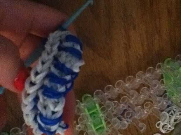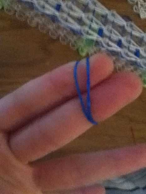 Al retirar el proyecto del telar, la primera clavija de la izquierda será la más difícil. No tienes que levantar todas las bandas a la vez. Si es más fácil, puede levantar algunos en un momento hasta que todos estén fuera.