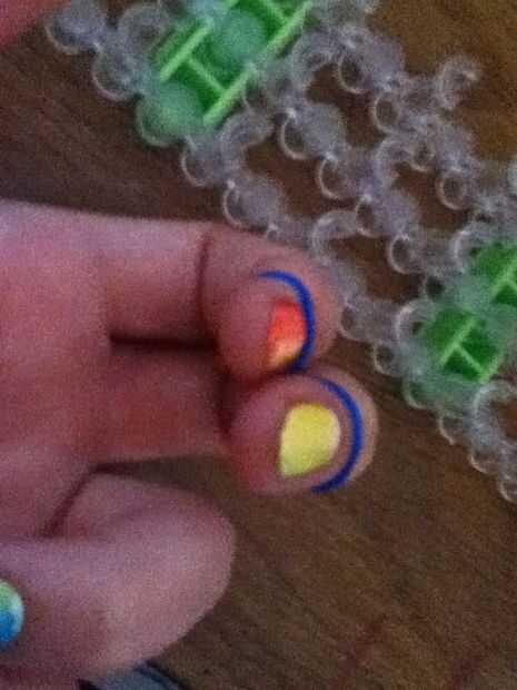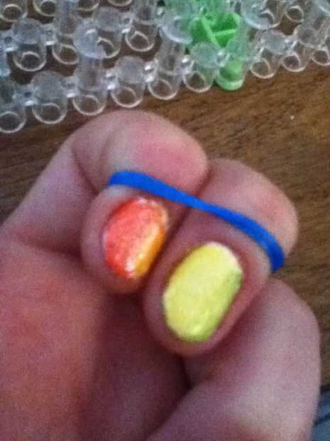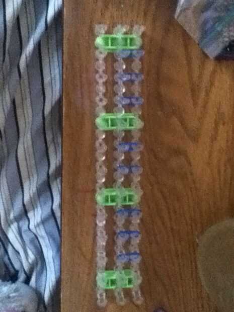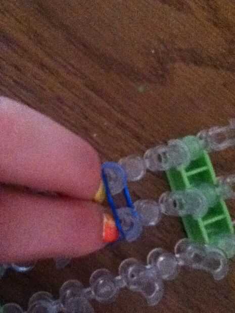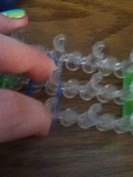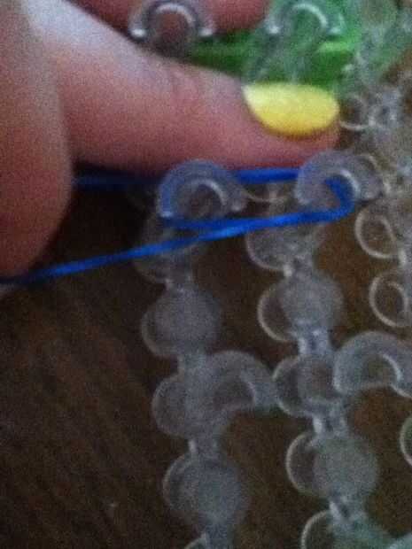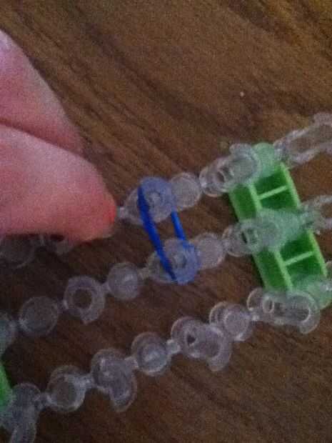 Todas las clavijas se crean de esta manera. Desea colocar la primera banda en las tercera clavijas. Deben envolver alrededor de dos filas.