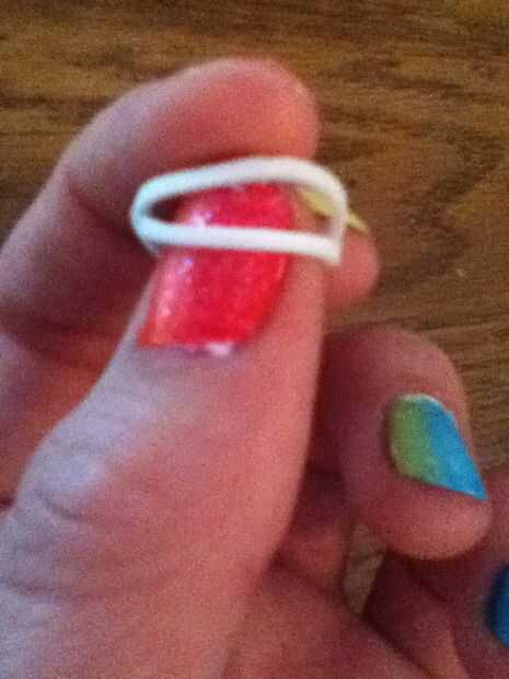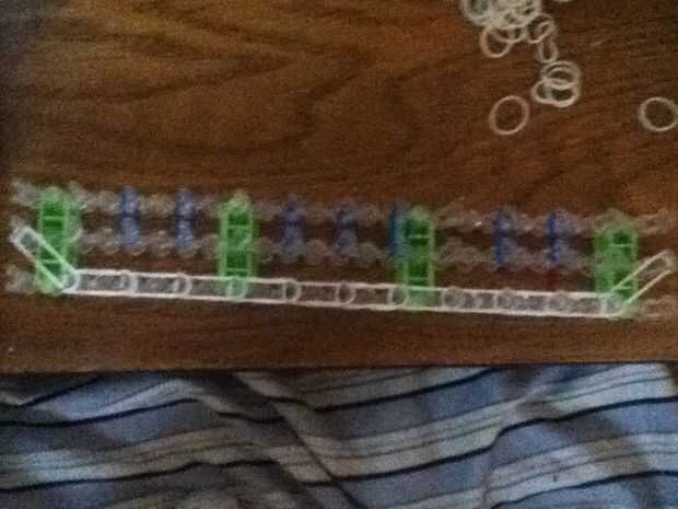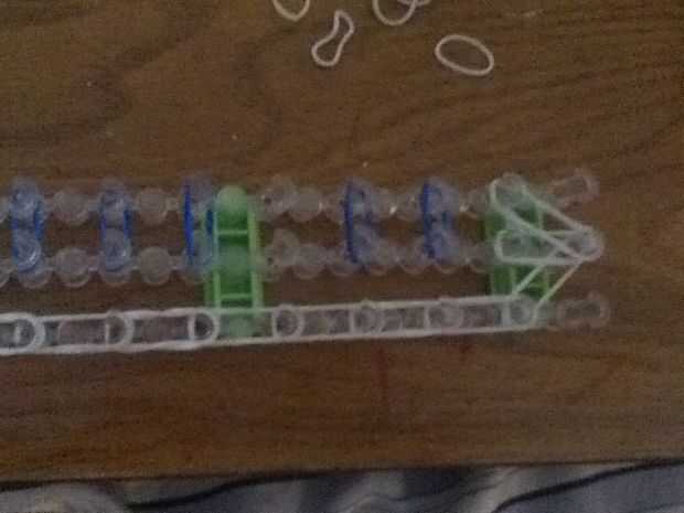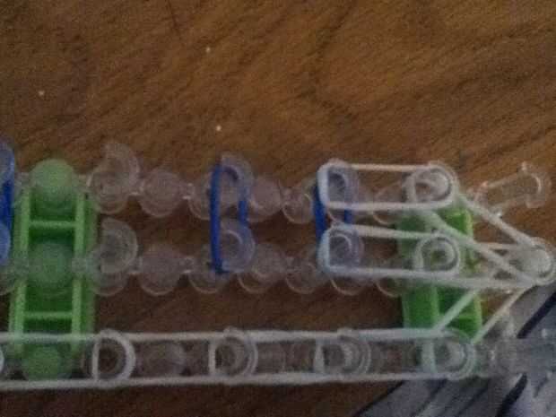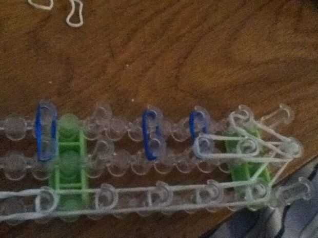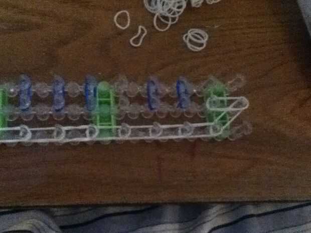 Coloque las bandas (recuerda usar dos) a lo largo de la fila inferior en el patrón de cadena única.