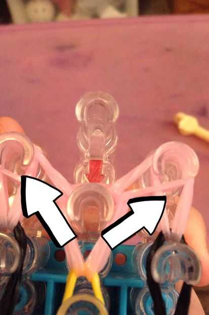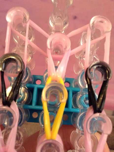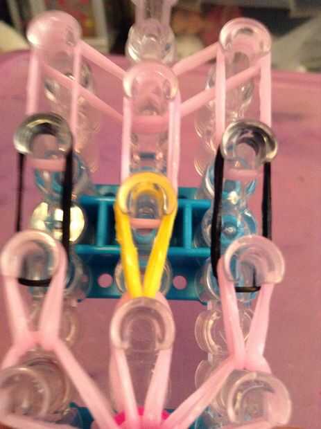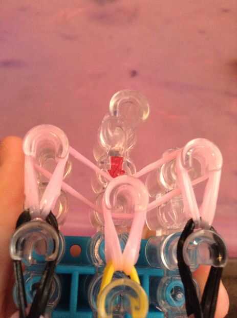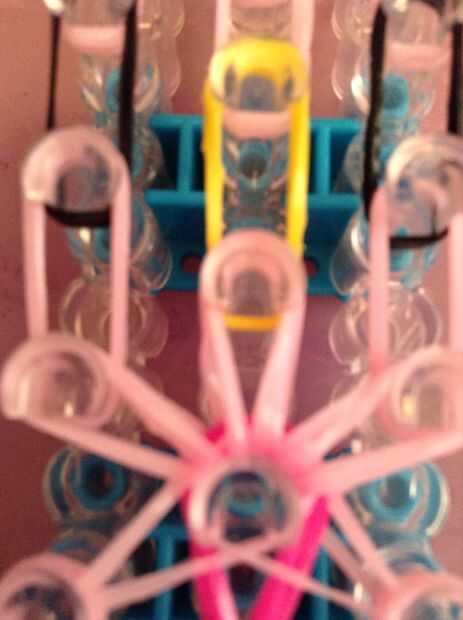 sus materiales. Necesita 45 claro o bandas, 2 bandas negras y 1 banda de su elección de colores. También necesitarás un gancho que se avecina, te recomiendo un metal.Paso 1: que se avecina Asegúrese de que su telar semicírculos son hacia usted.Paso 2