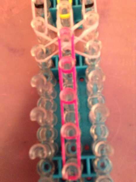 Paso 1: materiales Telar del arco irisBandasGanchoPaso 2: Colocación de bandas Tomar una banda primero ir de media peg a enfrente de él. Luego tomar dos bandas y hacer lo mismo en la fotografía. Ir de media ped en la clavija correcta diagonaly, hacer
