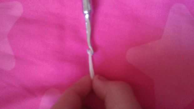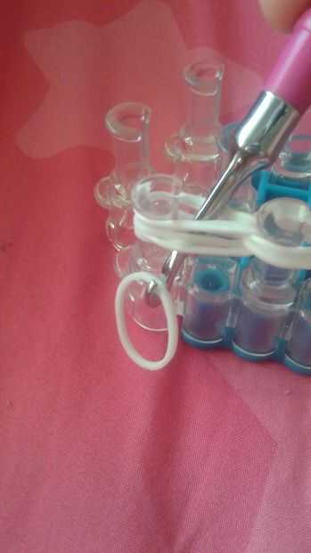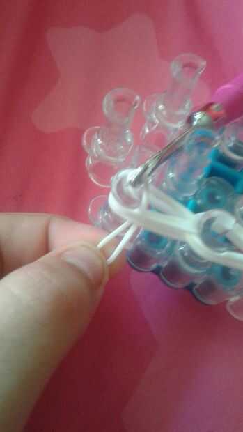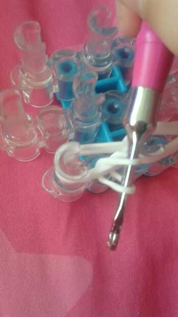 Ahora, toma una goma blanca y poner en su gancho (Foto 1). Luego, deslice el gancho (con la banda de goma en él) a través de las últimas bandas (Foto 3). ASEGÚRESE DE QUE OBTENER TODAS LAS BANDAS ANTES DE QUE SE QUITE, O SE DESHAGAN. A continuación tienes la goma por un lado con la mano y con el otro lado, usted traiga para arriba (Foto 3) y coloque con el lado del gancho (foto 4). Ahora vas a traer el lado más cercano a la parte posterior del anzuelo y con el otro (Fig 5). Luego agarras (con las manos) el lado que está ahora más cercano a usted y al mismo tiempo, coloque el extremo en el gancho por el lado que está sosteniendo y apriete.