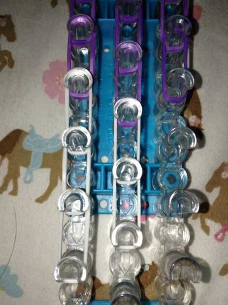 en los utimos años las maniñas arco iris telar han alcansado la fama pero hoy traigo algo diferente solo presten atencion y podran lograrlo facilmentePaso 1: colocacion de las banditas y tejido ♥Quitamos un espacio y colocamos los demas de tal forma