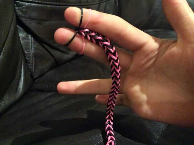 Añadir en otra banda a los dedos y levantar otra vez ambos lados de la banda inferior. Mantenga las bandas agrega y elevación hasta tener la longitud deseada.