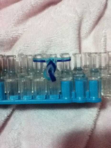 así es como luce la pulsera de cola de pescadoPaso 1: Tomar una de sus bandas de goma y enrosque en un ochoPaso 2: Colocarla en el telarPaso 3: Añadir una banda elástica que no se tuerce en un ochoPaso 4: Agregar otra banda de gomaPaso 5: Tomar su ga