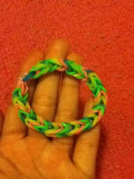 manera fácil de hacer una pulsera de cola de pescado en cualquier lugar.Paso 1: materiales Todo lo que necesitas esSu elección de colores de gomasy un clip C o SPaso 2: Poner la primera banda de goma de color en una figura de ocho en los dos dedos. P