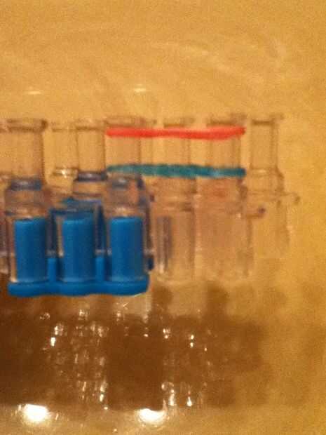 manera fácil de hacer una pulsera de cola de pescado en cualquier lugar.Paso 1: materiales Todo lo que necesitas esSu elección de colores de gomasy un clip C o SPaso 2: Poner la primera banda de goma de color en una figura de ocho en los dos dedos. P