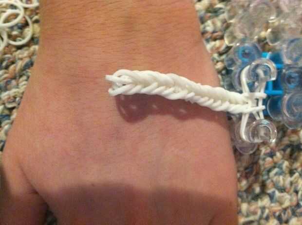 así es como luce la pulsera de cola de pescadoPaso 1: Tomar una de sus bandas de goma y enrosque en un ochoPaso 2: Colocarla en el telarPaso 3: Añadir una banda elástica que no se tuerce en un ochoPaso 4: Agregar otra banda de gomaPaso 5: Tomar su ga