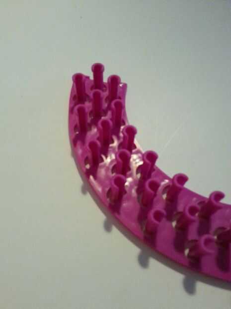 Paso 1: materiales Telar del arco irisBandasGanchoPaso 2: Colocación de bandas Tomar una banda primero ir de media peg a enfrente de él. Luego tomar dos bandas y hacer lo mismo en la fotografía. Ir de media ped en la clavija correcta diagonaly, hacer