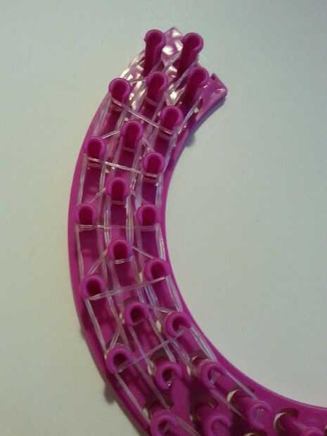 Paso 1: materiales Telar del arco irisBandasGanchoPaso 2: Colocación de bandas Tomar una banda primero ir de media peg a enfrente de él. Luego tomar dos bandas y hacer lo mismo en la fotografía. Ir de media ped en la clavija correcta diagonaly, hacer