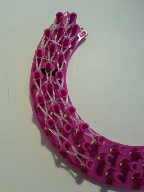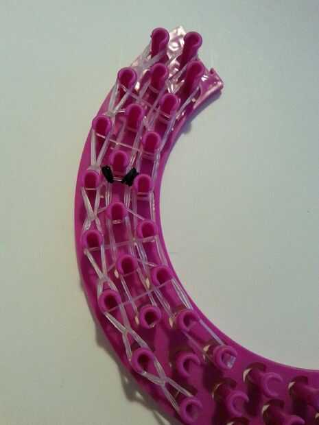 Paso 1: materiales Telar del arco irisBandasGanchoPaso 2: Colocación de bandas Tomar una banda primero ir de media peg a enfrente de él. Luego tomar dos bandas y hacer lo mismo en la fotografía. Ir de media ped en la clavija correcta diagonaly, hacer