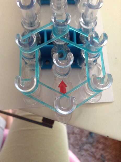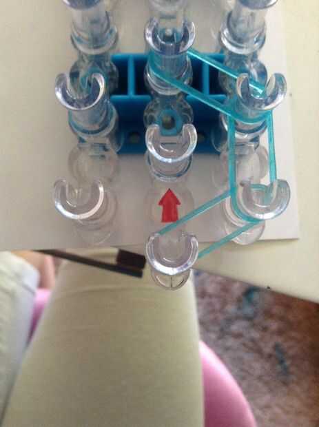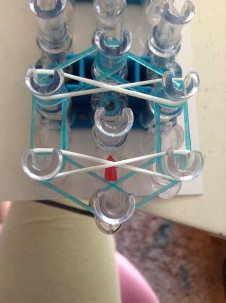 Debe ver una forma de diamante. Así que tome su banda de color (estoy usando turquesa) y van de la clavija central a la clavija de la derecha. Entonces subir de esa clavija blanca a la siguiente. Luego de eso clavija derecha al centro. Volviendo a la primera clavija usaste, colocar una banda de esa clavija central a la izquierda. Vaya de eso peg al frente con otro grupo. Por último, pasando de esa clavija, ir al centro con otra banda. A continuación, vamos a utilizar el blanco. Una banda blanca y una figura 8. Coloque un extremo en la primera clavija izquierda y otro en la primera peg.make derecha que empuja sus bandas hacia abajo! Luego realizar otra blanca figura 8 y lugar un extremo en el segundo izquierda peg y la otra en el segundo justo clavija.
