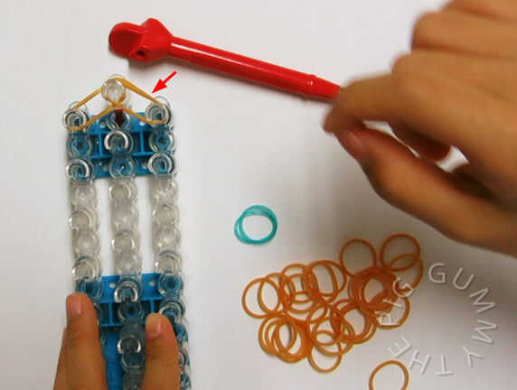 Establecer a continuación 2 gomas marrón como se muestra (forma invertida hacia abajo V)