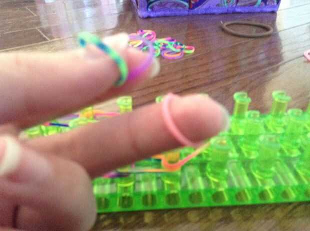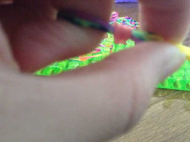 Aquí es cómo hacer el arco iris telar bebida sola.Paso 1: Obtener los elementos necesita cualquier color gomas C clip, gancho, telar.Paso 2: colocación de bandas de caucho Hacia fuera sus gomas en cada conjunto de clavijas.Paso 3: Tiempo de agregar t