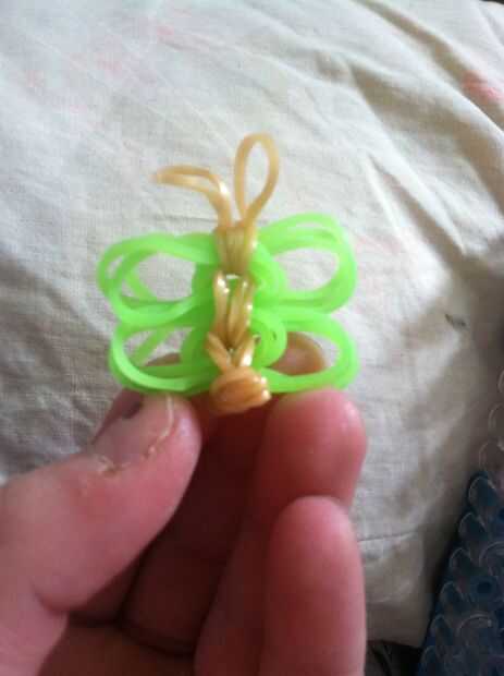 Tomar con cuidado la mariposa de su telar. Enderezar su mariposa y salir con tijeras y 3 bandas más, el color del cuerpo de la mariposa.