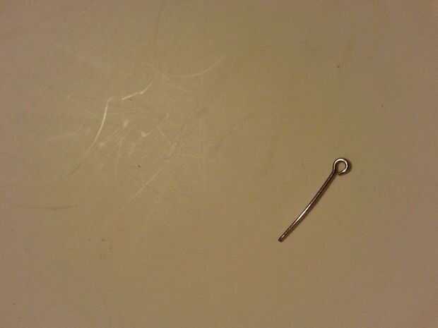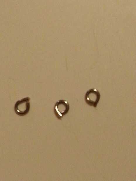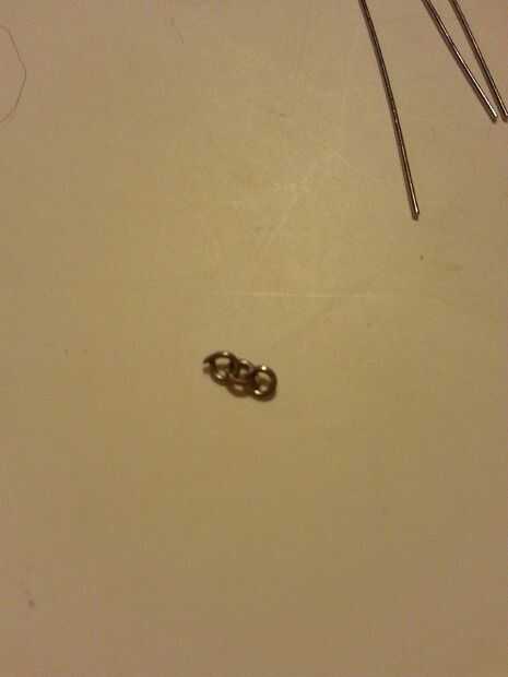 Su punto de aguja redonda alicate hacer tres anillas de los pernos de la cabeza (Foto 2) y conectarlos. (Foto 3) Luego tomar el perno de cabeza de restantes y utilice su cortador de alambre y con cuidado (jóvenes lectores, tienen un adulto hacer esto para usted) cortar la parte plana del perno (aka cabeza)(pic 4) tomar su aguja redonda alicates de punta y hacer un círculo en el extremo restante del perno de la. (Foto 5)