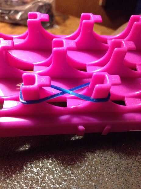 así es como luce la pulsera de cola de pescadoPaso 1: Tomar una de sus bandas de goma y enrosque en un ochoPaso 2: Colocarla en el telarPaso 3: Añadir una banda elástica que no se tuerce en un ochoPaso 4: Agregar otra banda de gomaPaso 5: Tomar su ga