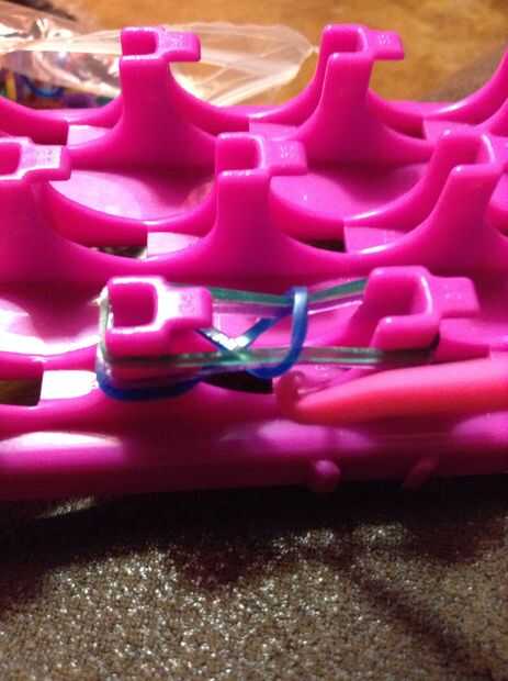 así es como luce la pulsera de cola de pescadoPaso 1: Tomar una de sus bandas de goma y enrosque en un ochoPaso 2: Colocarla en el telarPaso 3: Añadir una banda elástica que no se tuerce en un ochoPaso 4: Agregar otra banda de gomaPaso 5: Tomar su ga