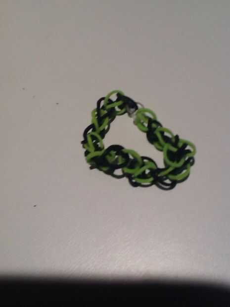 este patrón es muy fácil creo. Básicamente sólo repite sí mismo. Su un poco más gruesa que la pulsera de telar solo arco iris.Usted necesitará• arco iris telar (o cualquier otro telar)• gomas• un gancho• C-clip o pinza S(Quizá quieras tenerlo en una