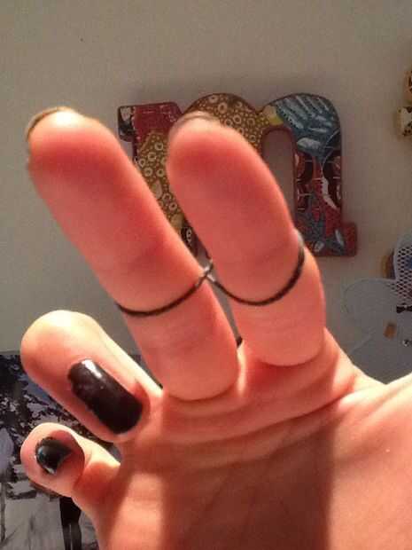 Empezar por conseguir una banda elástica y gire una vez. Ponga en el dedo índice y el dedo corazón.