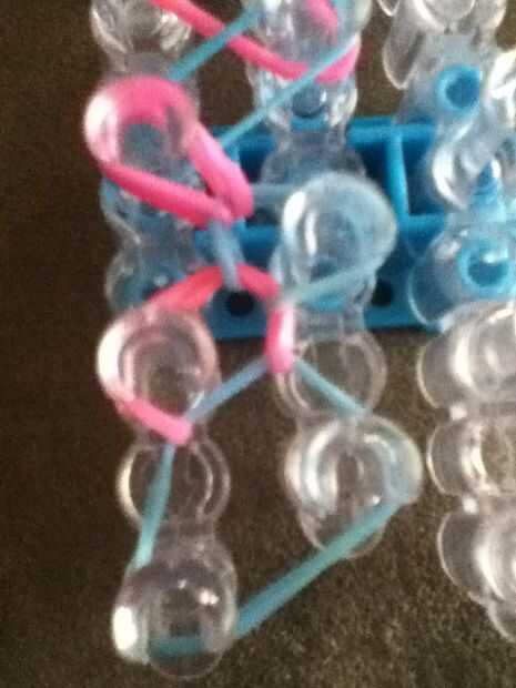 se necesita: un telar del arco iris, un gancho, bandas de goma y de un ' clip o clip de 'c'.Paso 1: Colocación de las bandas Con las bandas de color de rosa, mueva la banda de la clavija central a la izquierda e ir en línea recta hasta el segundo d a