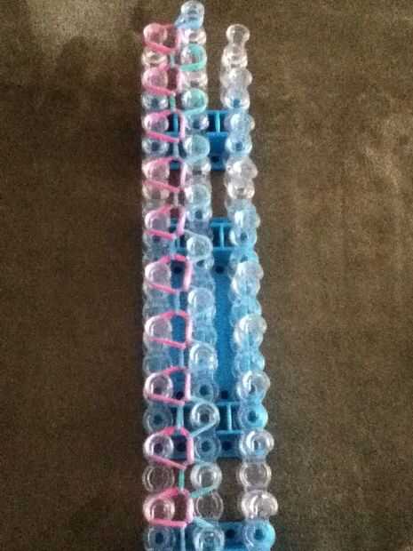 se necesita: un telar del arco iris, un gancho, bandas de goma y de un ' clip o clip de 'c'.Paso 1: Colocación de las bandas Con las bandas de color de rosa, mueva la banda de la clavija central a la izquierda e ir en línea recta hasta el segundo d a