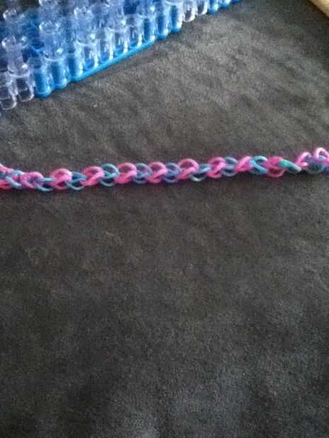 se necesita: un telar del arco iris, un gancho, bandas de goma y de un ' clip o clip de 'c'.Paso 1: Colocación de las bandas Con las bandas de color de rosa, mueva la banda de la clavija central a la izquierda e ir en línea recta hasta el segundo d a