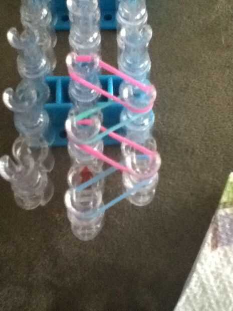 se necesita: un telar del arco iris, un gancho, bandas de goma y de un ' clip o clip de 'c'.Paso 1: Colocación de las bandas Con las bandas de color de rosa, mueva la banda de la clavija central a la izquierda e ir en línea recta hasta el segundo d a