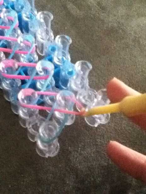 se necesita: un telar del arco iris, un gancho, bandas de goma y de un ' clip o clip de 'c'.Paso 1: Colocación de las bandas Con las bandas de color de rosa, mueva la banda de la clavija central a la izquierda e ir en línea recta hasta el segundo d a