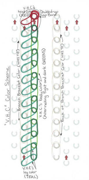 No dude en elegir caterpillar diferentes diseños y colores que mis ejemplos. Son sólo para que ver que parte del telar se convierte en que parte de la pulsera. Para este tutorial, utilizaré el esquema de color V.H.C. para conducirle a través de la pulsera de ejemplo.