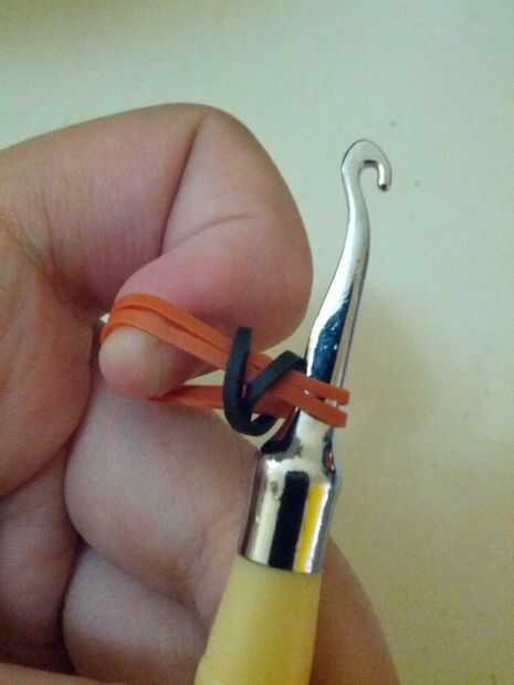 3 ahora tomando dos bandas de color de la galleta y y también en su gancho.
