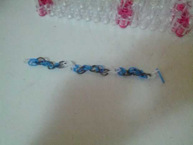 Coloque el clip en el extremo y tire su pulsera de telar. Tomar el otro extremo de la pulsera y conecte el clip. Ajustar su braclet hasta que estés contento con él. ¡ Listo!