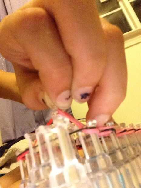 Aquí es cómo hacer el arco iris telar bebida sola.Paso 1: Obtener los elementos necesita cualquier color gomas C clip, gancho, telar.Paso 2: colocación de bandas de caucho Hacia fuera sus gomas en cada conjunto de clavijas.Paso 3: Tiempo de agregar t