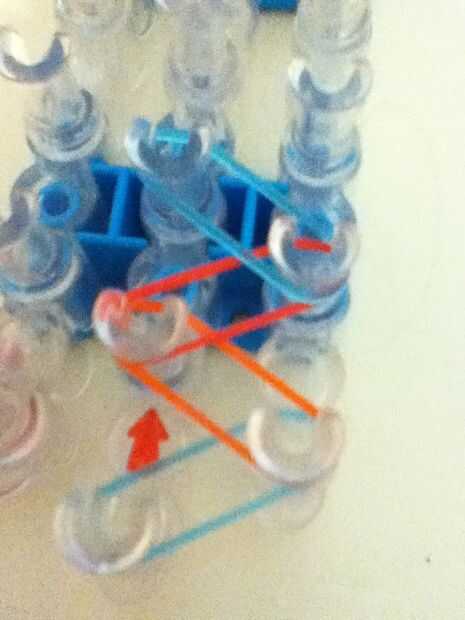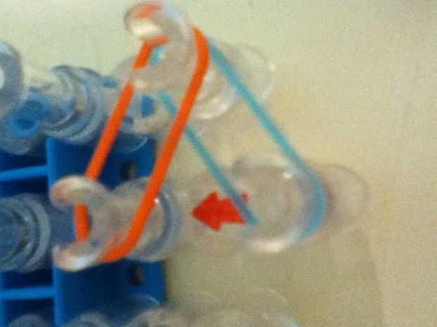Paso 1: Se necesita:Un telar del arco irisAlgunas gomas de telar del arco irisUn gancho dePaso 2: Colocar las bandas Gire el telar para que la flecha es hacia usted y coloque las bandas (ver imagen)Paso 3: Ahora gire el telar para que la flecha es ha