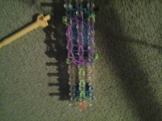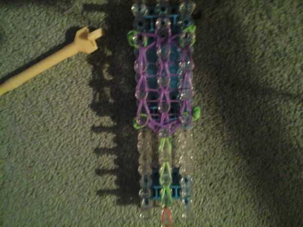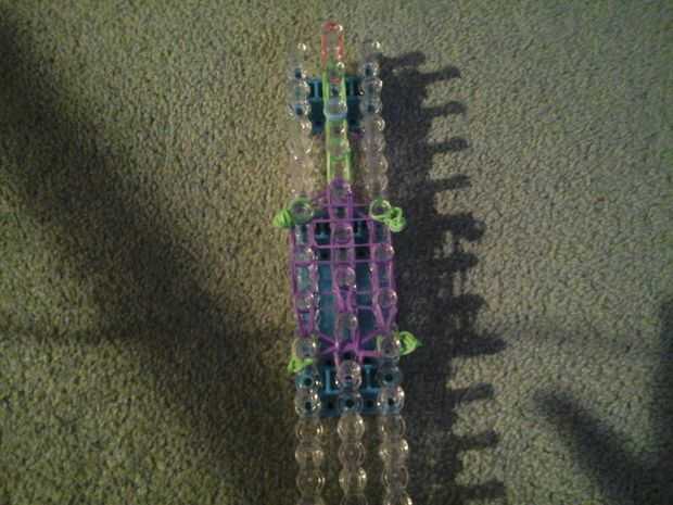 Paso 1: materiales Telar del arco irisBandasGanchoPaso 2: Colocación de bandas Tomar una banda primero ir de media peg a enfrente de él. Luego tomar dos bandas y hacer lo mismo en la fotografía. Ir de media ped en la clavija correcta diagonaly, hacer