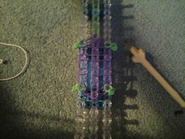 colocar una banda de la tapa de triple torsión en la clavija de la parte inferior. ahora es el momento de lazo