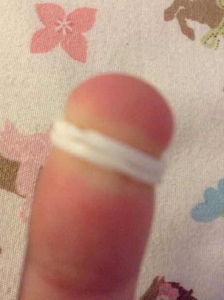 Ahora colocar una banda de la tapa en la clavija de media superior. Para formar una banda de la tapa, tomar una banda elástica y gírela para formar una figura 8. Luego, coloque los dos agujeros de 8 para formar una o doble.