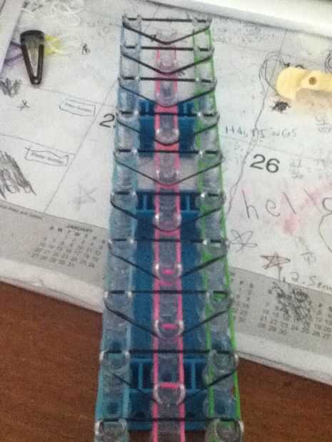 esto es una pulsera de telar del arco iris que he creado literalmente sentado en mi sofá haciendo la tarea. Fue aburrido deberes!Paso 1: suministros! Necesita su telar, tres bandas de colores diferentes, un clip de gancho y c o s.Paso 2: El contorno!