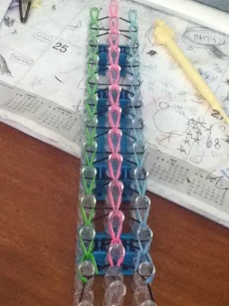 se necesita: un telar del arco iris, un gancho, bandas de goma y de un ' clip o clip de 'c'.Paso 1: Colocación de las bandas Con las bandas de color de rosa, mueva la banda de la clavija central a la izquierda e ir en línea recta hasta el segundo d a